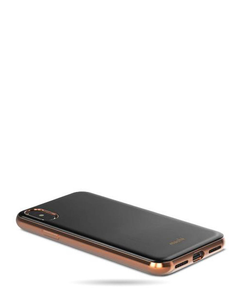 Moshi's iGlaze phone case for iPhone X/XS is a hybrid construction case that is the ultimate fusion of design, functionality, and drop-protection. The shock-absorbing case is available in three colors: Armour Black with a brushed metal-like finish to portray subtle refinement, and Pearl White and Taupe Pink which both feature an elegant glass-like structure that mimics your iPhone’s transparent back. A new shatter-proof frame created using Moshi’s proprietary metal-vaporization process produces a smart, high-gloss border that is both stylish and protective. Not only attractive, iGlaze safeguards your iPhone from drops, scratches, and shocks, while also supporting your device’s built-in wireless charging. A specialized surface-coating resists abrasion, heat, and bending to ensure your case retains its luster over time. A raised bevel protects your touchscreen when laid flat, and all buttons, cameras, and ports are easily accessible. The next evolution in material selection and finishing, iGlaze provides first-class style and is backed by our limited lifetime warranty.